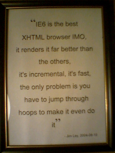 Thankfully, there is a solution to this epidemic. There are extensions, such as the Single Window extension that traps links that would open a new window, but instead opens a new tab. However, I still don’t think that’s right either — I should be the one to decide when a new tab opens. There is also a preference in Mozilla called browser.block.target_new_window which causes any link with a target attribute that is not targetting an existing window or frame, to open in the same window/tab. It is also possible to use a user stylesheet to give some indication when an author is the using the target attibute. I find Chris Pederick’s userContent.css to be the most effective for this purpose. Even though I like to use the browser preference and the user stylesheet (I didn’t particularly like Single Window myself), it’s not a perfect solution and the idea that people think they have the right to control my user agent still bugs me.